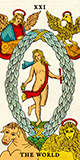 Mental as well as physical objects, emotions, and experiences can now, on the Conscious Path, be thoroughly investigated. The transcendence of exclusive self-identification with the object “I” being equal to Spiritual Realization, which entails the end of psychological suffering. That is represented in the card The World.